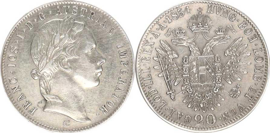 20 kr. 1854 C "R"