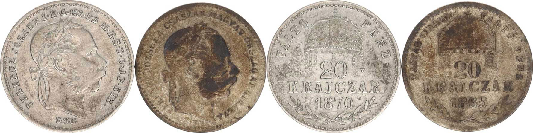 20 kr. 1869 KB; +20 kr. 1870 GYF "R" 2 ks