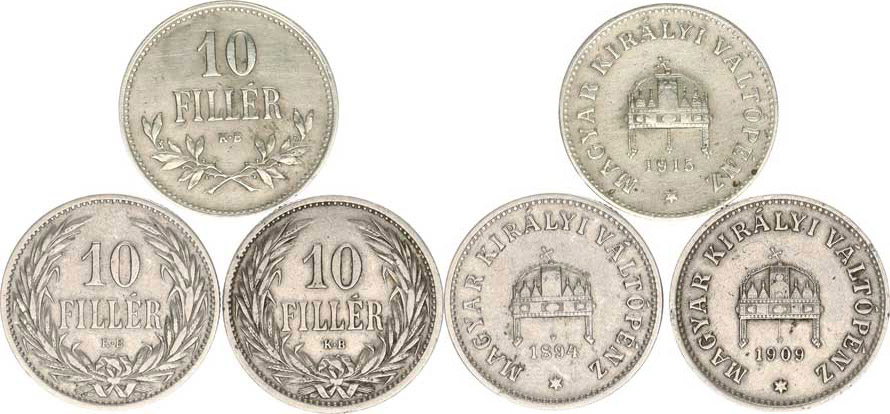 10 Fillér 1894, 1909, 1915 vše KB 3 ks
