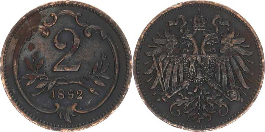 2 hal. 1892 b.zn. "RRR" 3,172 g_dr. oxyd.