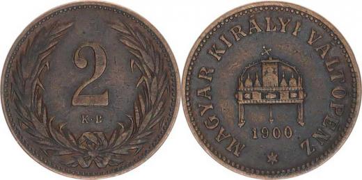 2 Fillér 1900 KB "RRR" 3,261 g_tém.