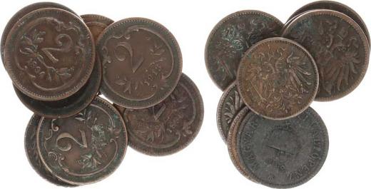 2 Fillér 1908 KB; +2 hal. 1894, 1896, 1911, 1912, 1913(2); +1 hal . 1900 vše b,zn, 7 ks