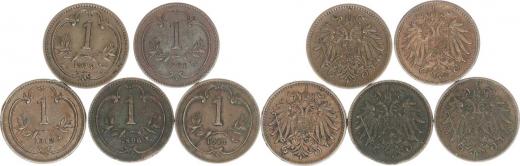 1 hal. 1896 (-1/2 hry.), 1901, 1912, 1913, 1914 vše b.zn. 5 ks