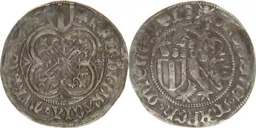 Štítový groš b.l. (1431-36), minc. Freiberg V-CR Krug 991/1 2,951 g_nep. nedor., tém.