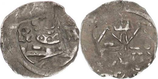 Pfennig, Amberg, Poprsí mezi písmeny R - A nad cimbuřím / Dvě hla vy zepředu ve dvojitém štítu Götz 10c; Steinhilber 137c 0,659 g