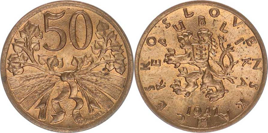 50 hal. 1947 - bronzový odražek 2,952 g "R"