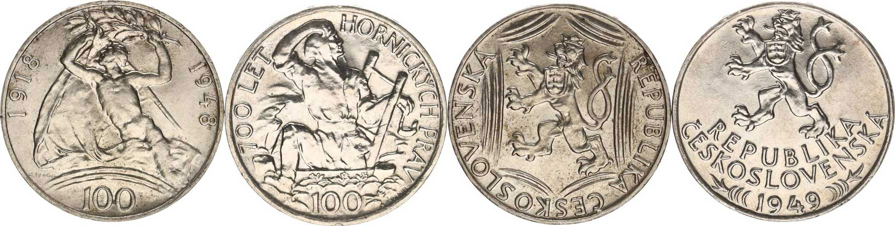 100 Kčs 1948 - 30. výr. republiky; +100 Kčs 1949 - Hornické právo 2 ks