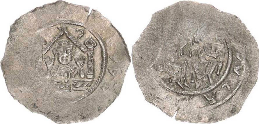 Denár C - 593 0,557 g +starý podlož. štítek _opisy část. vyraženy