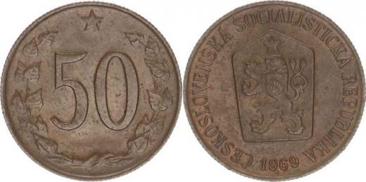 50 hal. 1969 - var.: bez teček, původní ražba "R" 2,991 g
