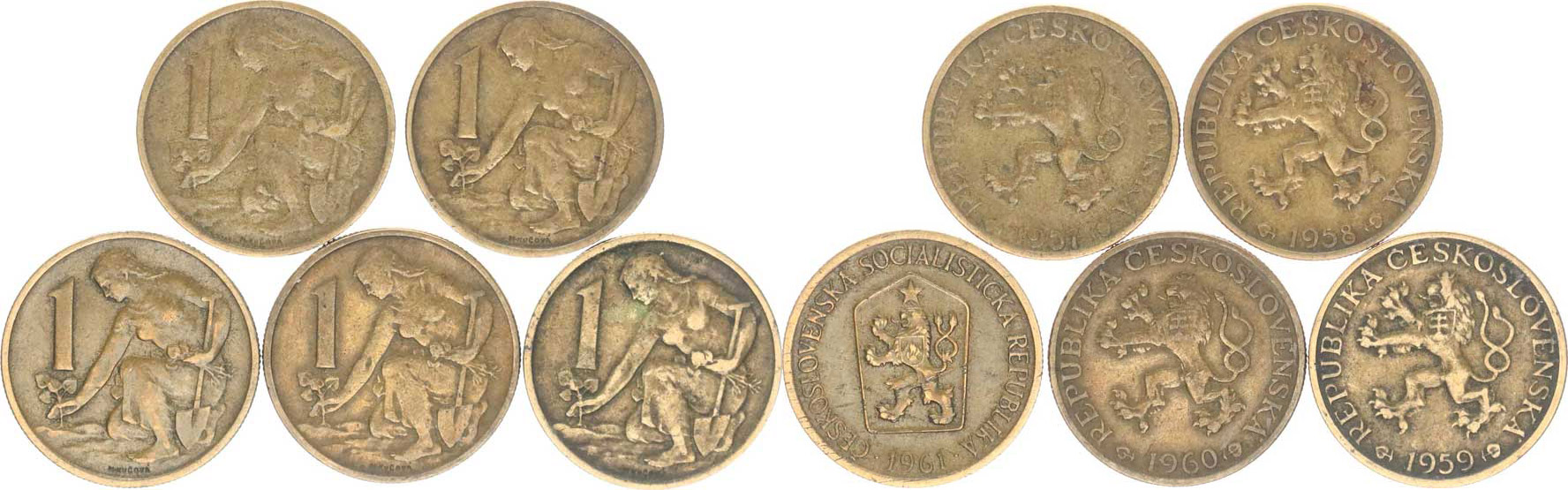 1 Kčs 1957, 1958, 1959, 1960, 1961 5 ks