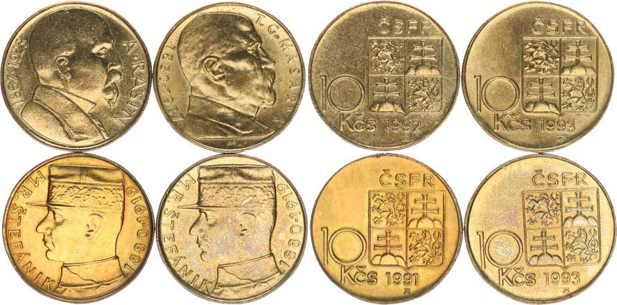 10 Kčs 1991 - Štefaník, 1992 - Rašín, 1993 - TGM, +Rašín 4 ks