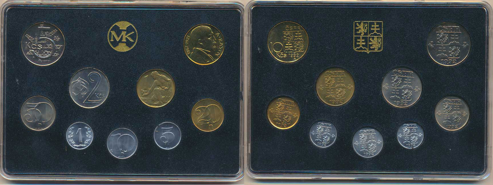 Ročníková sada mincí 1992 +10 Kčs Rašín _poškozený přebal