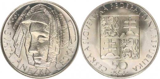 50 Kčs 1990 - sv. Anežka var.: bez signatury autora kapsle
