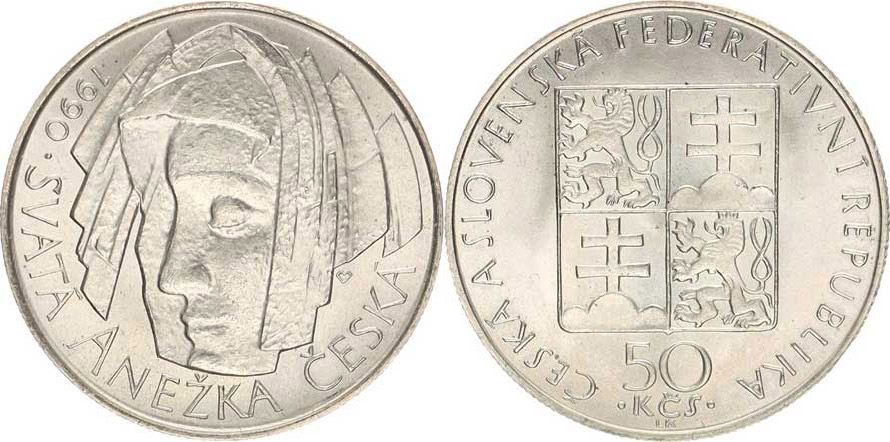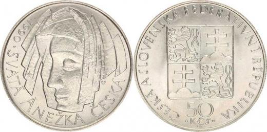50 Kčs 1990 - sv. Anežka, se signaturou autora +certifikát kapsle
