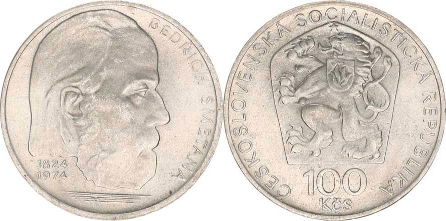 100 Kčs 1974 - Smetana, -nápis na hr. čitelný z Rv. (od znaku)