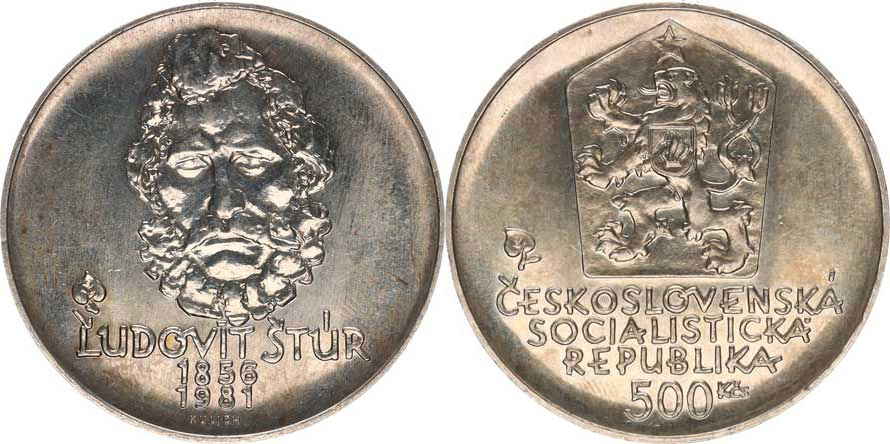 500 Kčs 1981 - Štúr Ľudovít, nápis na hr. čitelný z rubu (znak)