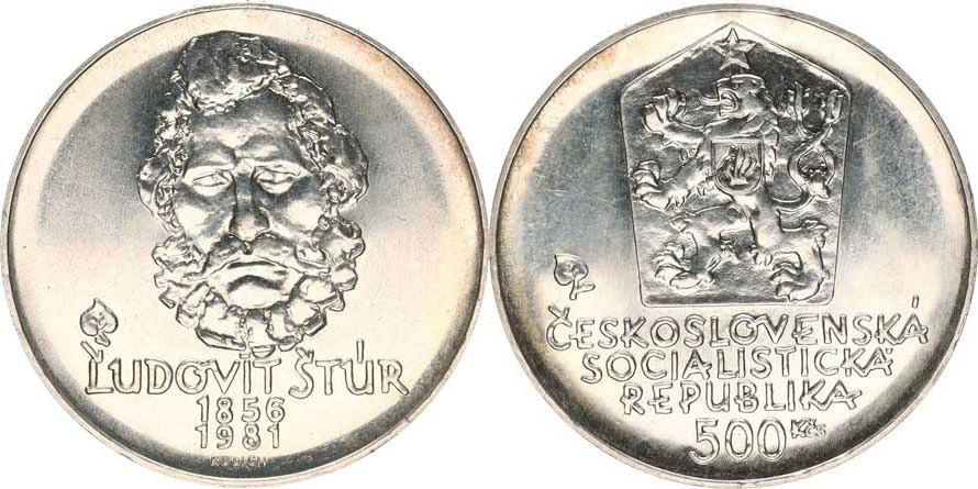 500 Kčs 1981 - Štúr Ľudovít, nápis na hr. čitelný z líce ! (port rét)