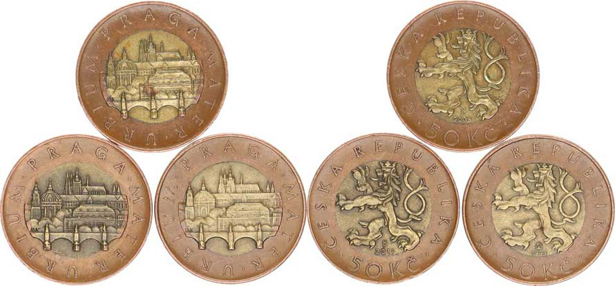 50 Kč 1993, 2008, 2011 3 ks_patina