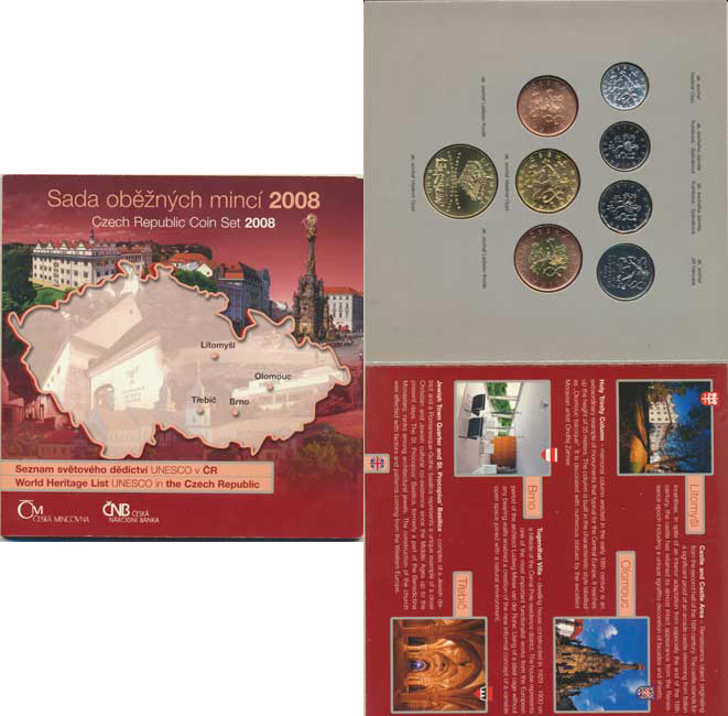 Ročníková sada mincí 2008 - UNESCO +žeton Litomyšl, Olomouc, Tře bíč, Brno (10 000 ks)