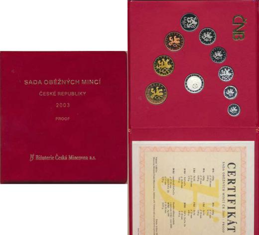 Ročníková sada mincí 2003 - + Ag medaile 10.výr. české mincovny semišový obal +certifikát (3 000 ks)