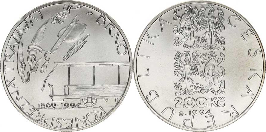 200 Kč 1994- Koněspřežná tramvaj Brno (19 501 ks) kapsle + certifikát