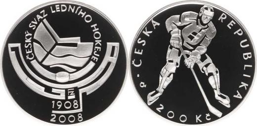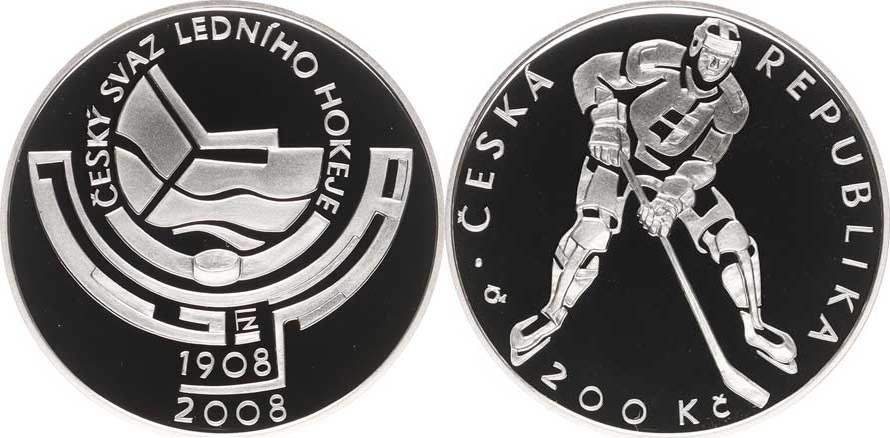 200 Kč 2008 - Český svaz ledního hokeje orig. etue, kapsle +certifikát