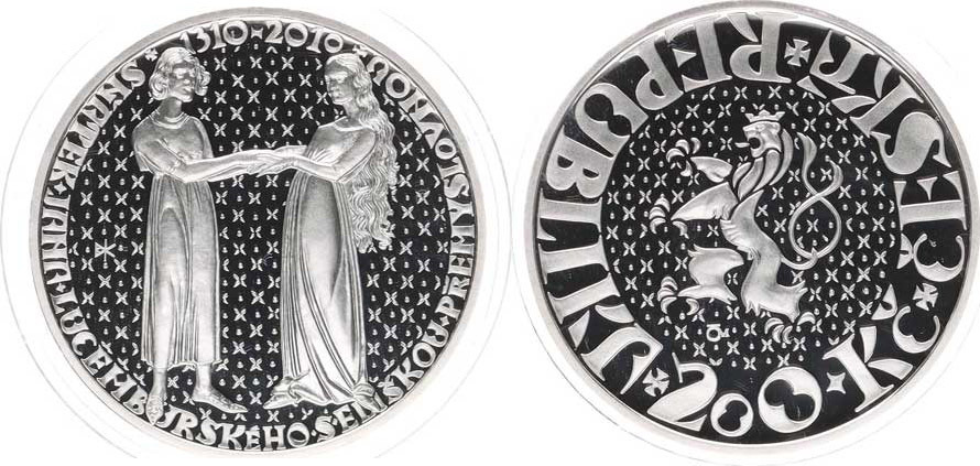 200 Kč 2010 - sňatek Jana Lucemb. s Eliškou Přemyslovnou orig.etue, kapsle +certifikát