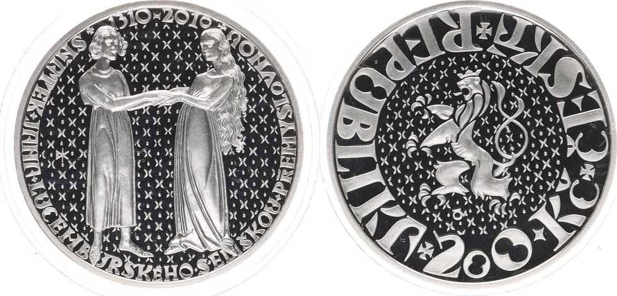 200 Kč 2010 - sňatek Jana Lucemb. s Eliškou Přemyslovnou orig.etue, kapsle +certifikát