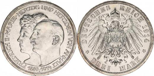3 Mark 1914 A - Stříbrná svatba KM 30 _zc. nep. rys. v av.