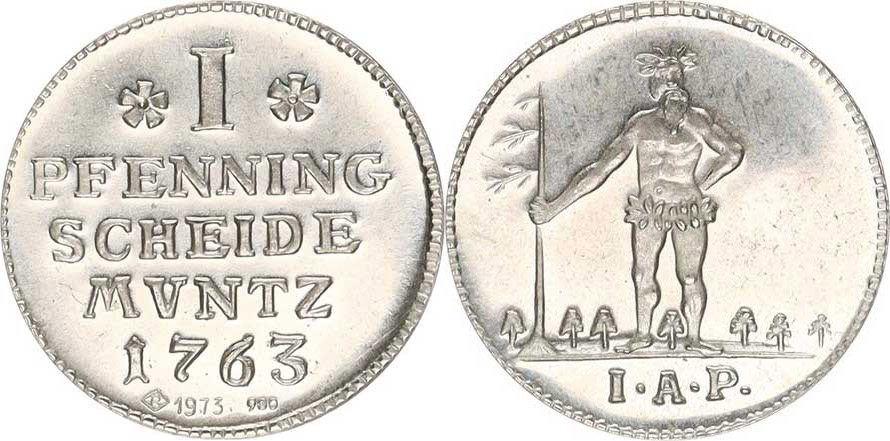 1 Pfennig 1763 IAP sběratelská ražba 1973 Ag 900 2924 g