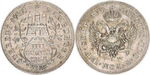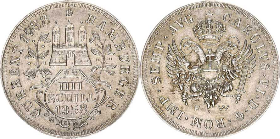 4 Schilling 1738 (1958) FW - medailová výroční ražba postříbřen ý kov 25,38 mm 4,127 g