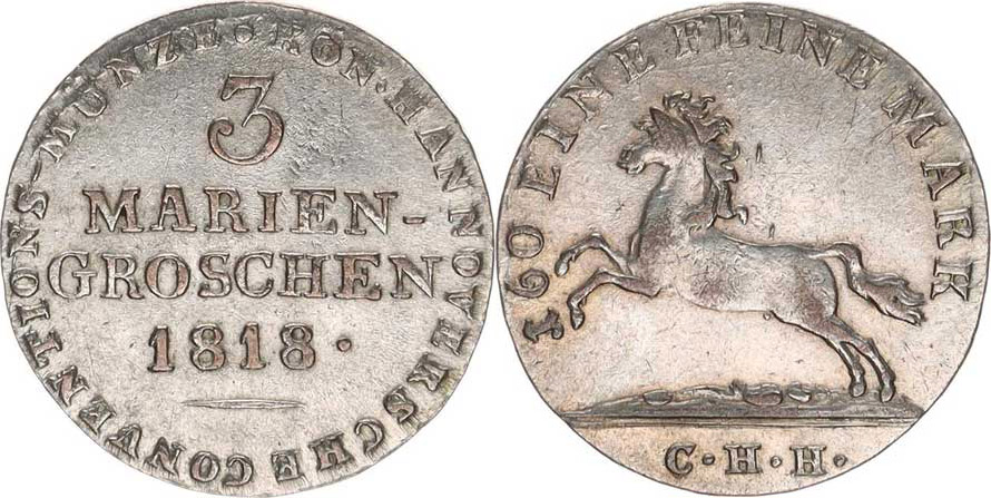 3 Mariengroschen 1818 CHH KM 114,1