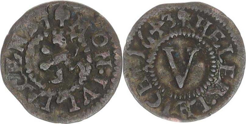 5 Heller leicht 1643 Ag 13 mm 0,30 g "R"