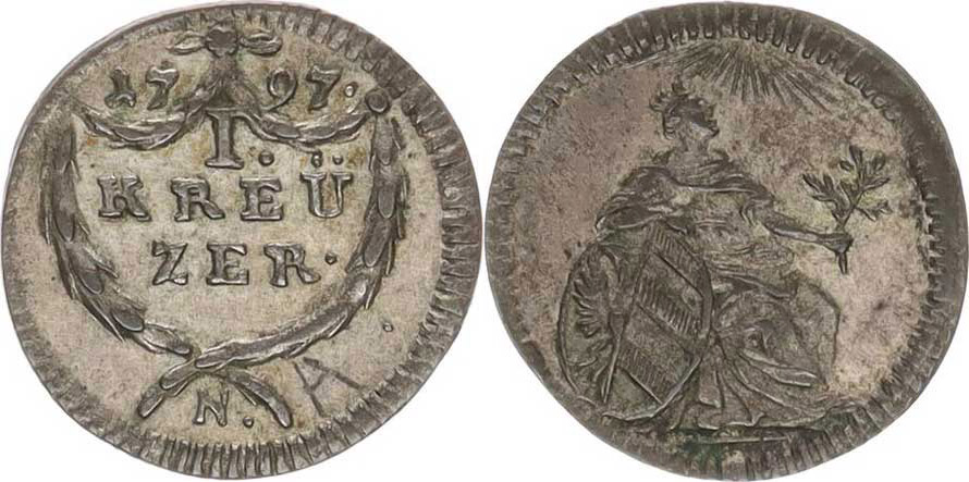1 Kreuzer 1797 N - sedící bohyně Ag KM 390; Kellner 387; Schön 97