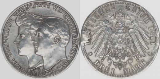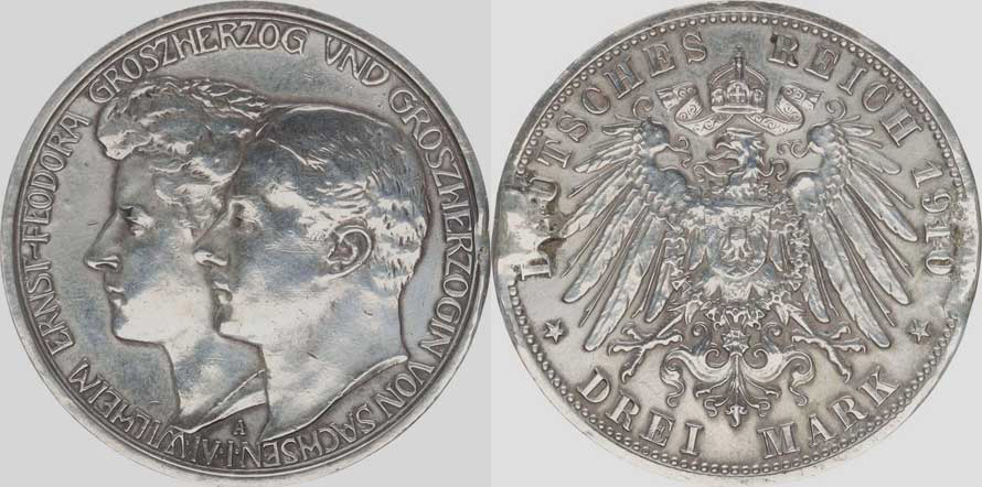 3 Mark 1910 A - Druhá svatba Y. 176; KM 221 "R" _stopa po sponě