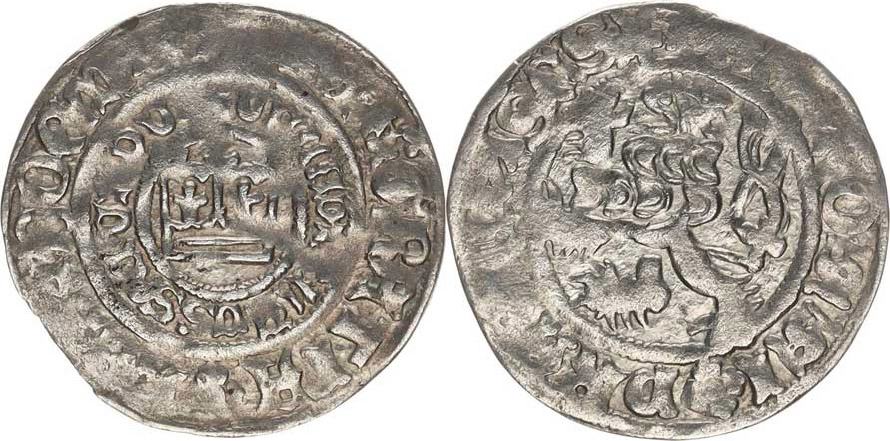 Pražský groš Smolík 1 var.: uzavřená koruna 2,521 g _část. nedor.