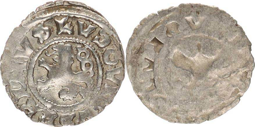 Bílý peníz jednostranný, var.: bez rozdělovacích znamének, lev s jazykem 0,38 g