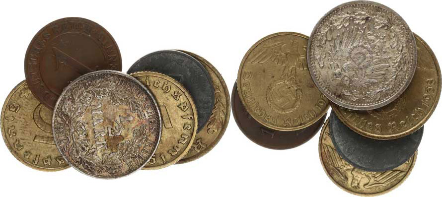 1/2 Mark 1913 A; +10 Rpf. 1938 E; +5 Rpf. 1937 J, 1938 D; +1 Rntp f. 1923 G; +1 Rpf. 1944 B 6 ks