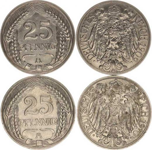 25 Pfennig 1909 A, 1910 A KM 18 2 ks