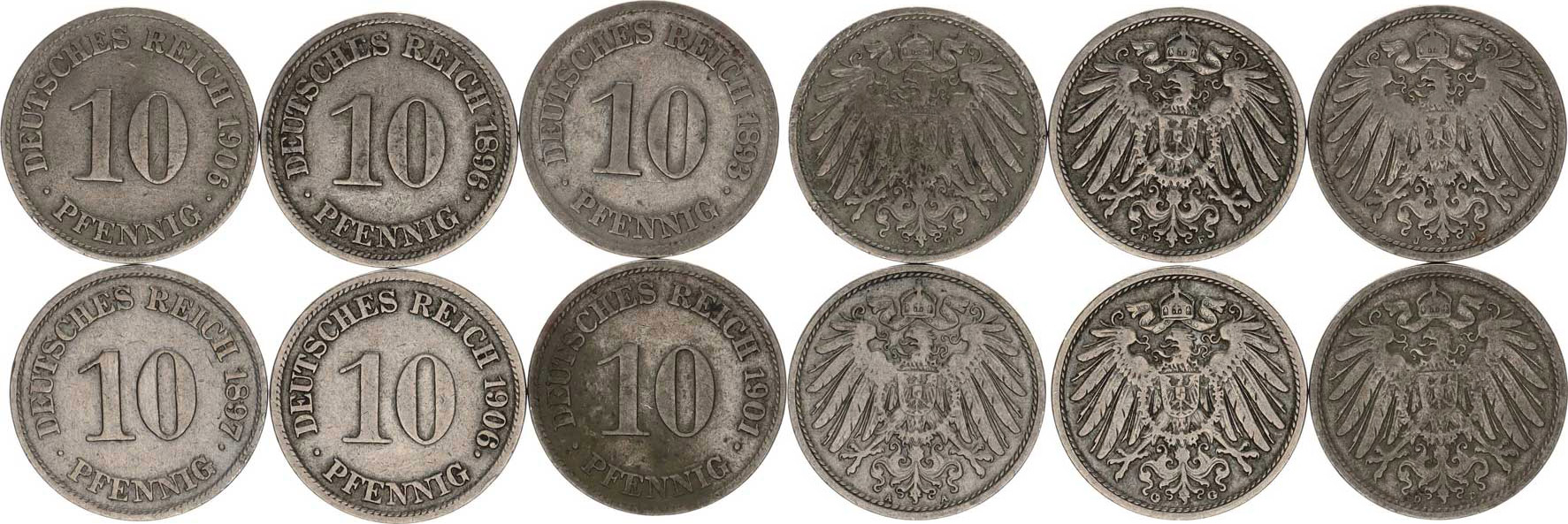 10 Pfennig 1893 J, 1896 F, 1897 A, 1901 D, 1906 D, G 6 ks