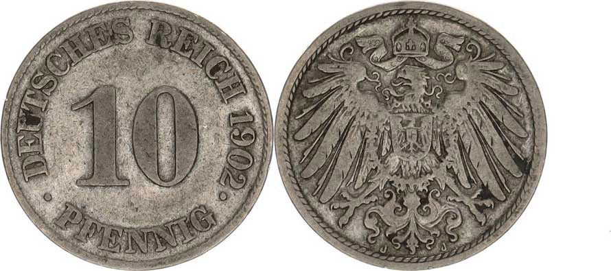 10 Pfennig 1902 J Y.13 "R"