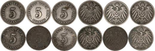 5 Pfennig 1898 E, F, 1899 F, 1908 F, G, J 6 ks