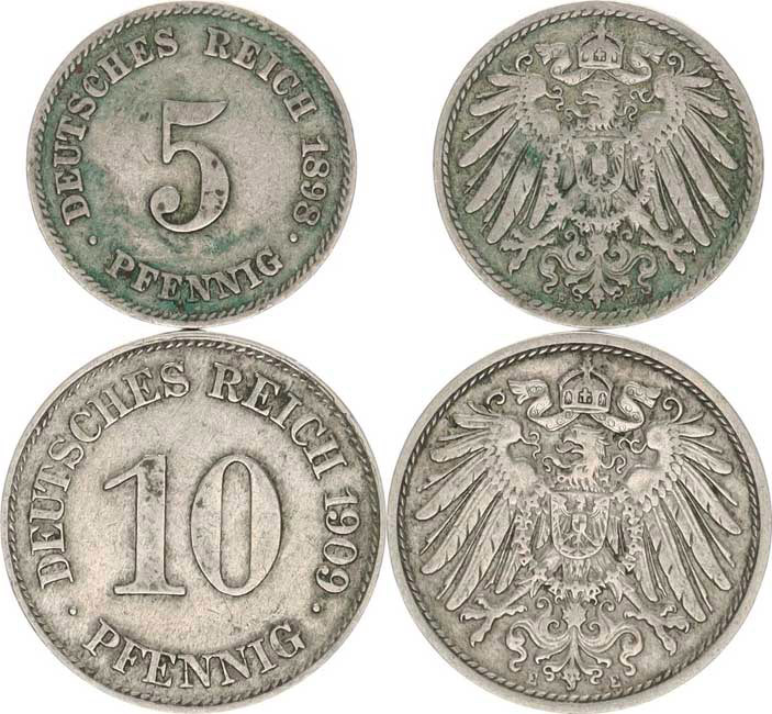 5 Pfennig 1898 E; +10 Pfennig 1909 E 2 ks