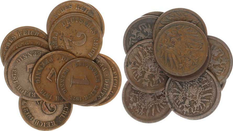 2 Pfennig 1875 A, C, D, E, F, G, H; +1876 A, F; +1904 A; +1912 D; +1 Pfennig 1875 A 13 ks