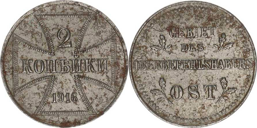 2 Kopějka 1916 J Fe KM 22_dr.ox. ďubky, tém.