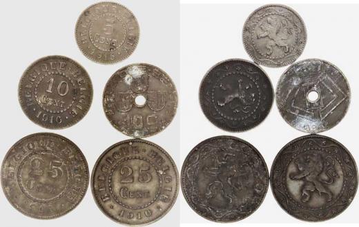 25 Centimes 1915, 1916; +10 Centimes 1916, 1942; +5 Centimes 1915 5 ks