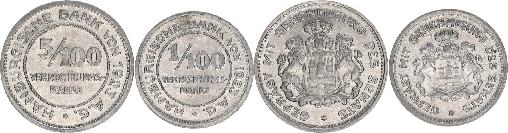 Hamburg - 1/100 Verrechnungs Marke 1923 KM Tn 1 2/ dtto, 5/100 Verrechnungs Marke 1923 KM Tn 2 2 ks