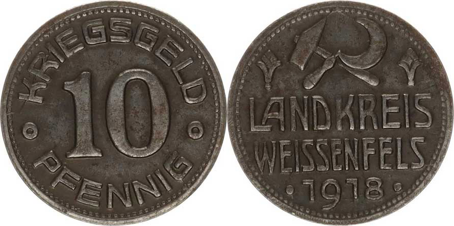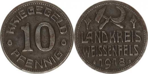 Weissenfels - 10 Pfennig 1918 Landkreis - typ: srp a kladivo Fe 22 mm Funck 590,1; Men18 33235.1