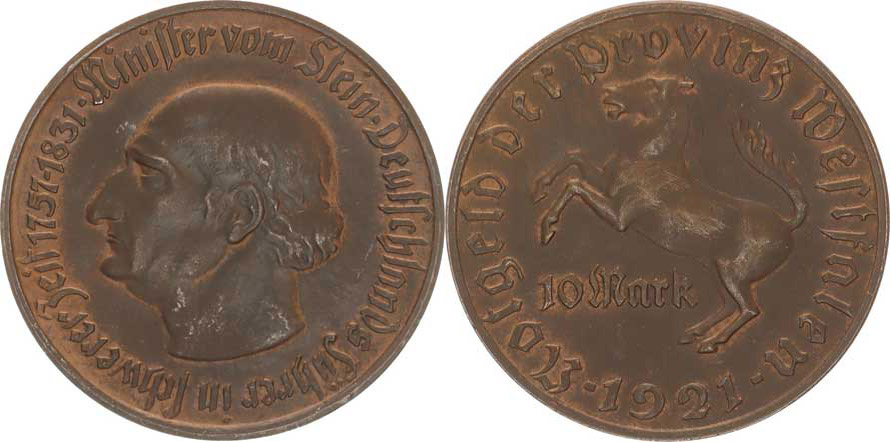 Westfahlen - 10 Mark 1921 Stein Cu 38 mm J 13