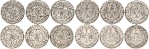 50 Rpf. 1927 A, J, 1930 A, 1935 A, 1936 A, 1937 A 6 ks